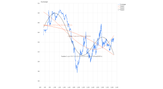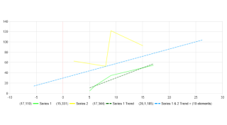 Demonstrates the use of TrendLineExponential from within ForecatEngine which find the best fitting exponential curve to sets of data.
