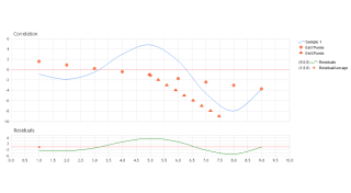 Demonstrates the use of LeastSquaresRegressionLineX and LeastSquaresRegressionLineY from within Correlation class.