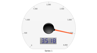 Demonstrates a gauge chart created to look like a clock and displaying current server time.