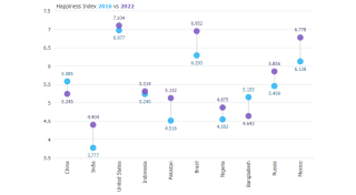 This sample deomonstrates a ranked slope chart with specific categories for each axis.