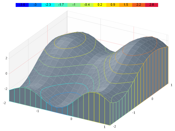 // Demonstrates a 3D contour surface chart with DrawToFloor.