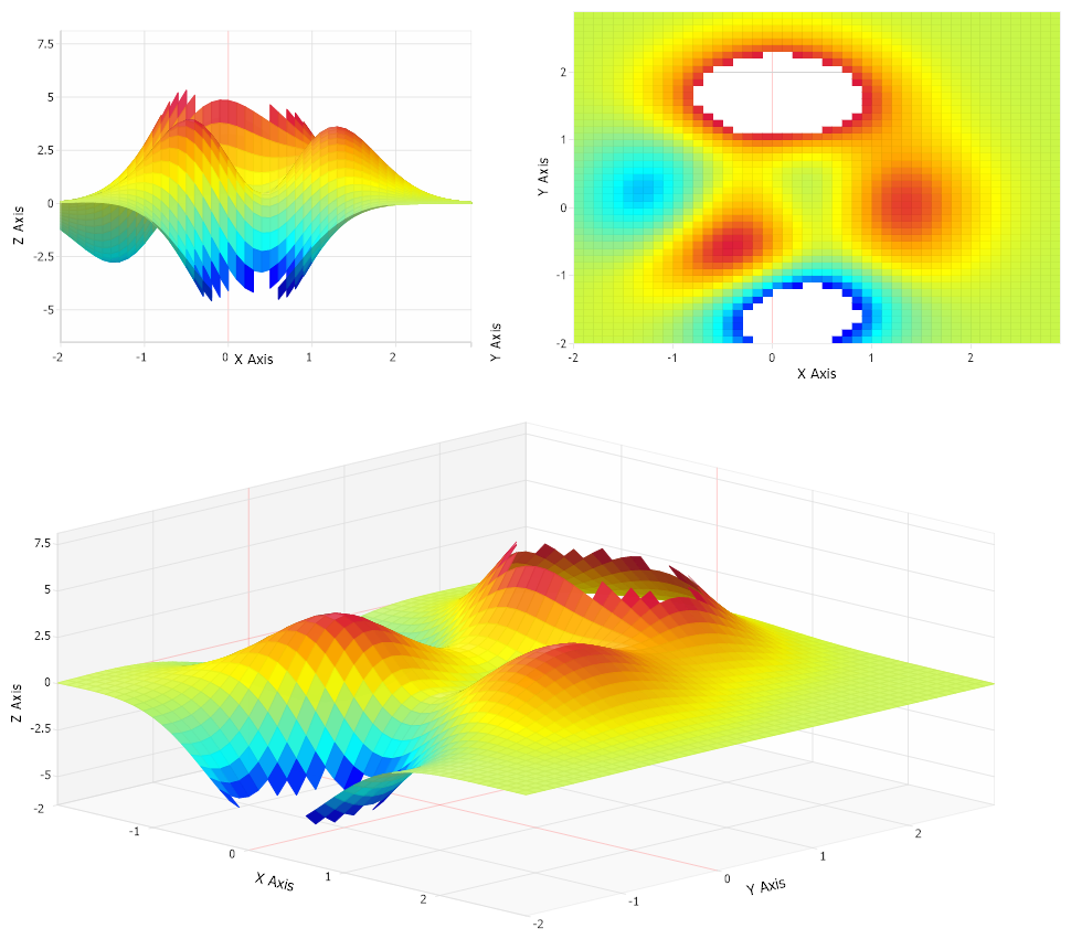 Demonstrates creating multiple views of 3D data with transparent sections.