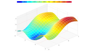 Demonstrates a 3D surfaceX chart with DrawToFloor and a 2 color smartPalette.