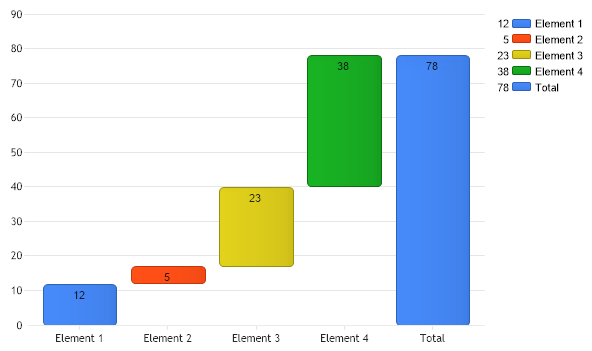 Demonstrates how to construct a waterfall chart.
